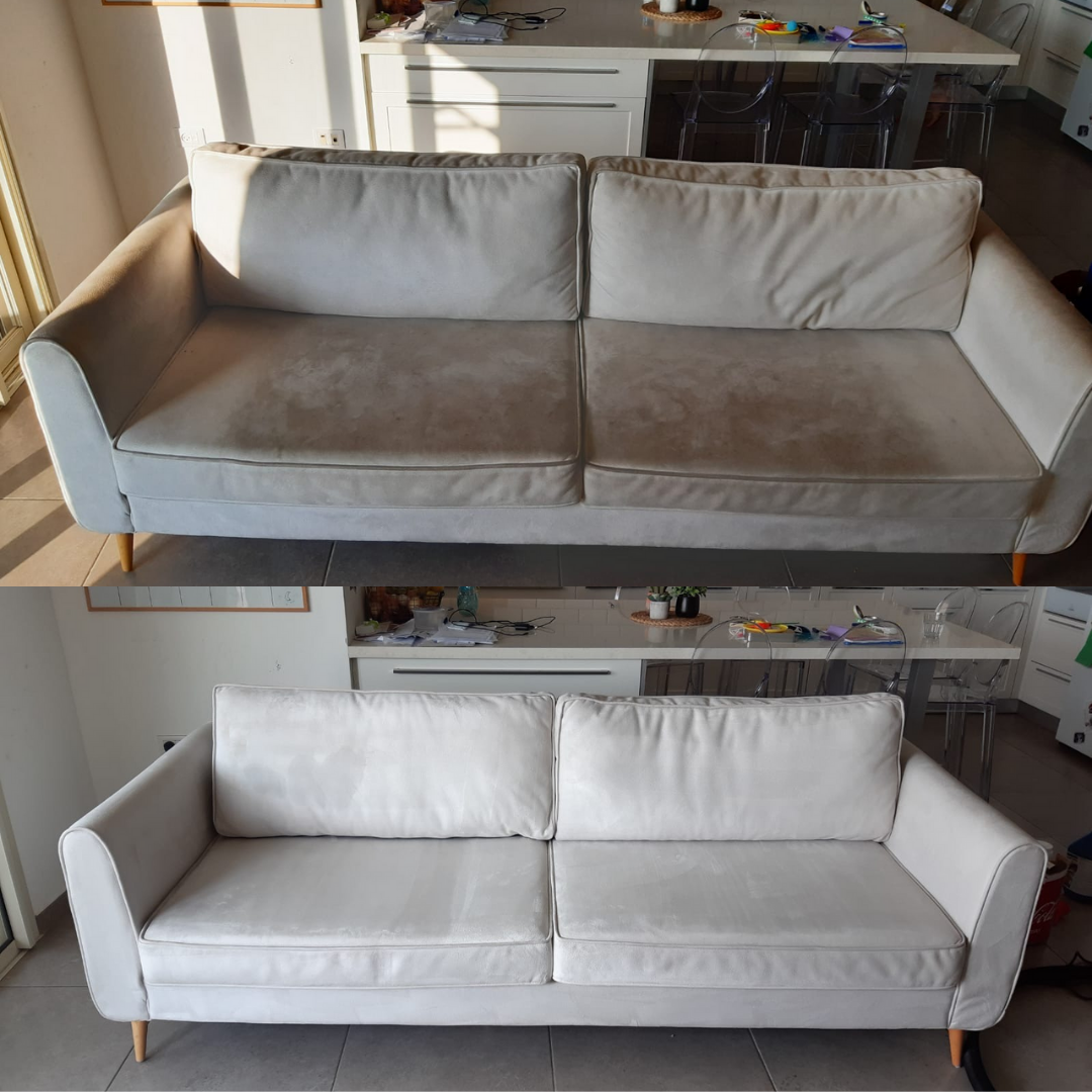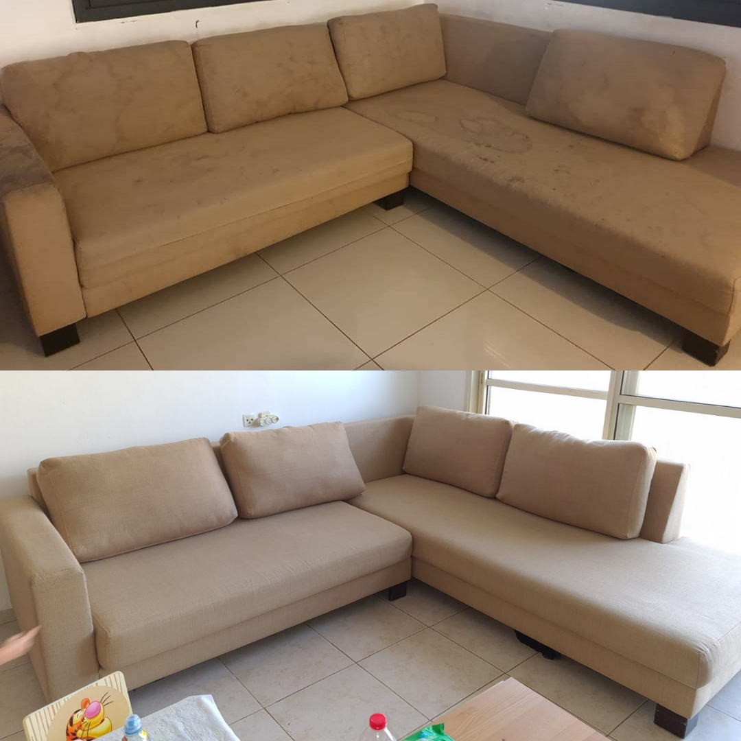 עבדנו קשה, מתחילים לראות את שיפור מראה הספה. מספה מלוכלכת – לספה נקייה. ניתן לספה 24-12 שעות של מנוחה עד לתוצאה של ספה מבריקה וחדשה.